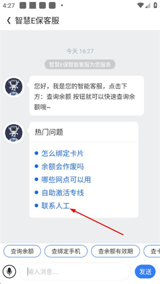 3、在客服頁(yè)面的熱門(mén)問(wèn)題中,點(diǎn)擊聯(lián)系人工選項(xiàng)。