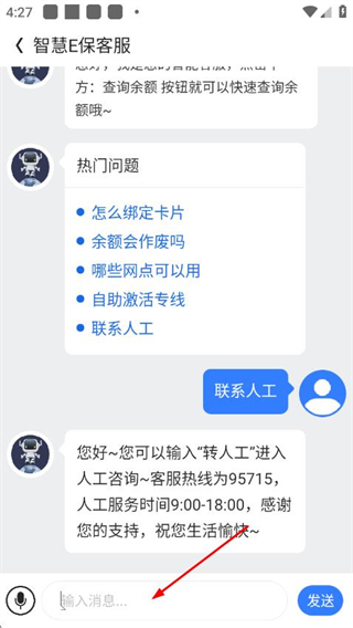 4、在輸入框輸入轉(zhuǎn)人工并發(fā)送,即可接入人工客服咨詢(xún)。