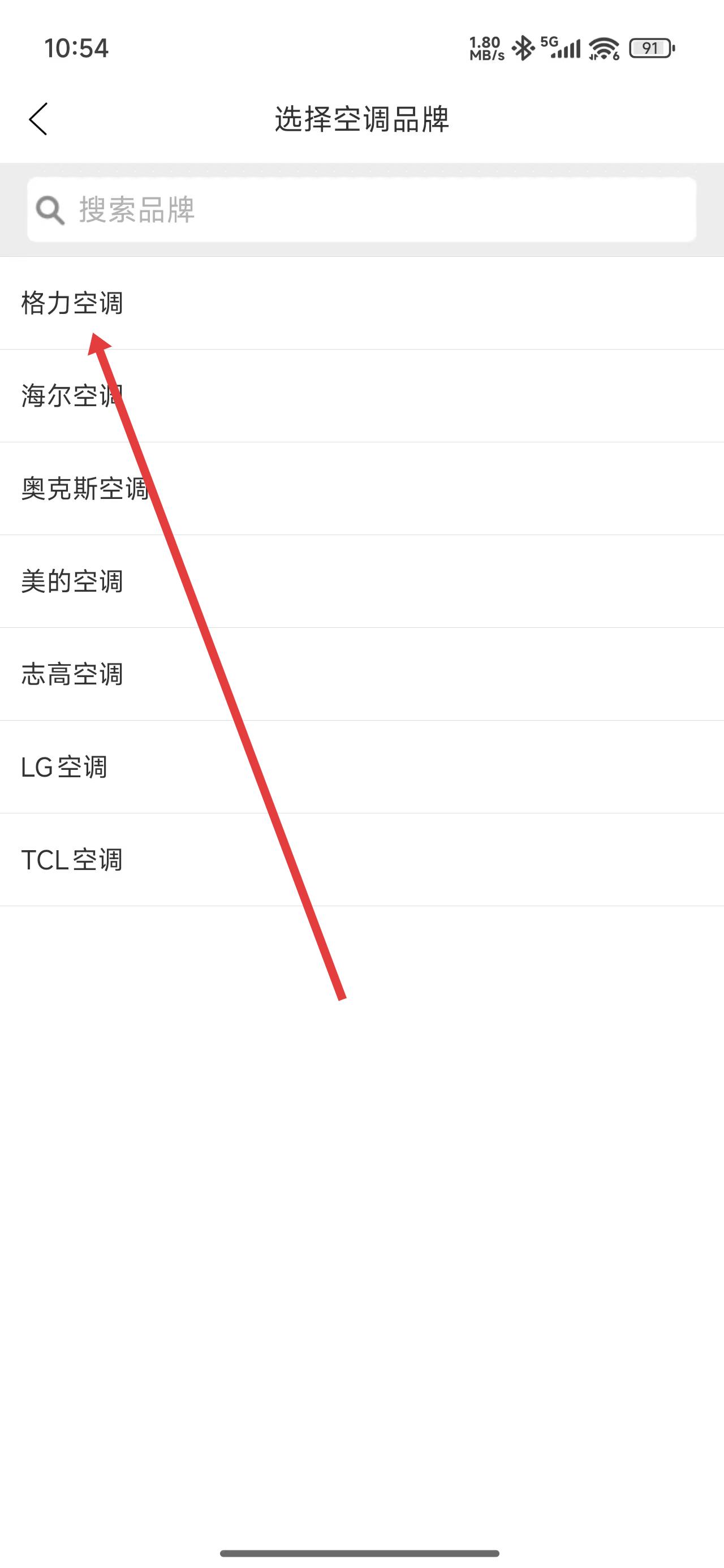 3、可以點(diǎn)擊選擇要添加紅外線的空調(diào)品牌如格力空調(diào)。