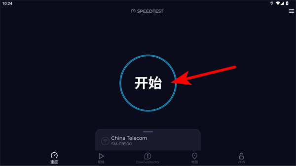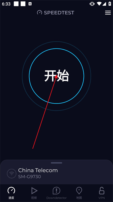 1、打開Speedtest應(yīng)用,點(diǎn)擊開始按鈕,進(jìn)行網(wǎng)絡(luò)測速。
