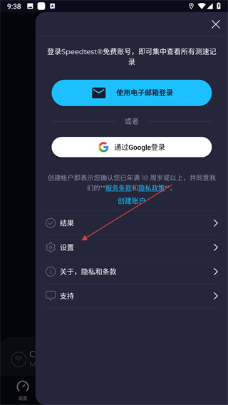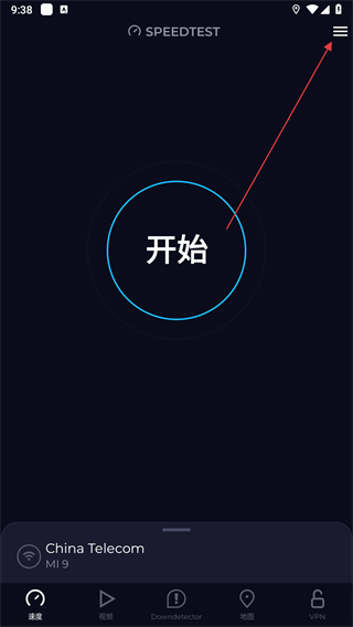 1、打開Speedtest應(yīng)用,點(diǎn)擊界面右上角的三條橫線菜單圖標(biāo)。