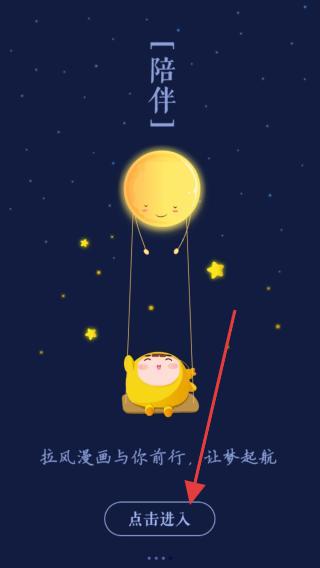 1、打開拉風(fēng)漫畫APP,進(jìn)入前點(diǎn)擊進(jìn)入的按鈕。