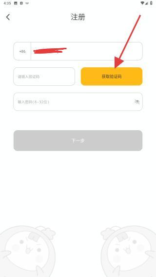 3、在注冊的頁面內(nèi),輸入注冊的手機(jī)號再點(diǎn)擊獲取驗(yàn)證碼。