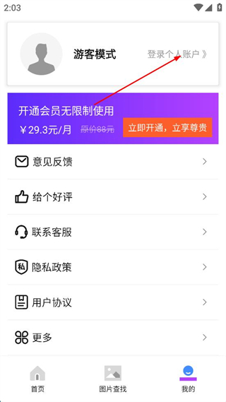 2、在個(gè)人中心界面,點(diǎn)擊“登錄個(gè)人賬戶”按鈕,進(jìn)入用戶登錄界面。