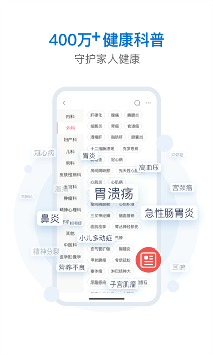 用戶通過(guò)搜索疾病或癥狀相關(guān)的詞找到對(duì)應(yīng)的科普內(nèi)容、醫(yī)院和醫(yī)生。