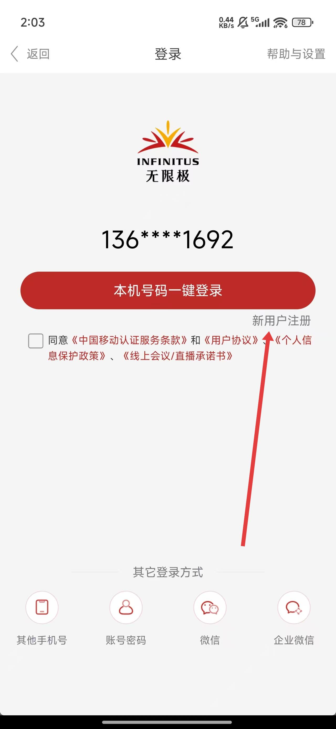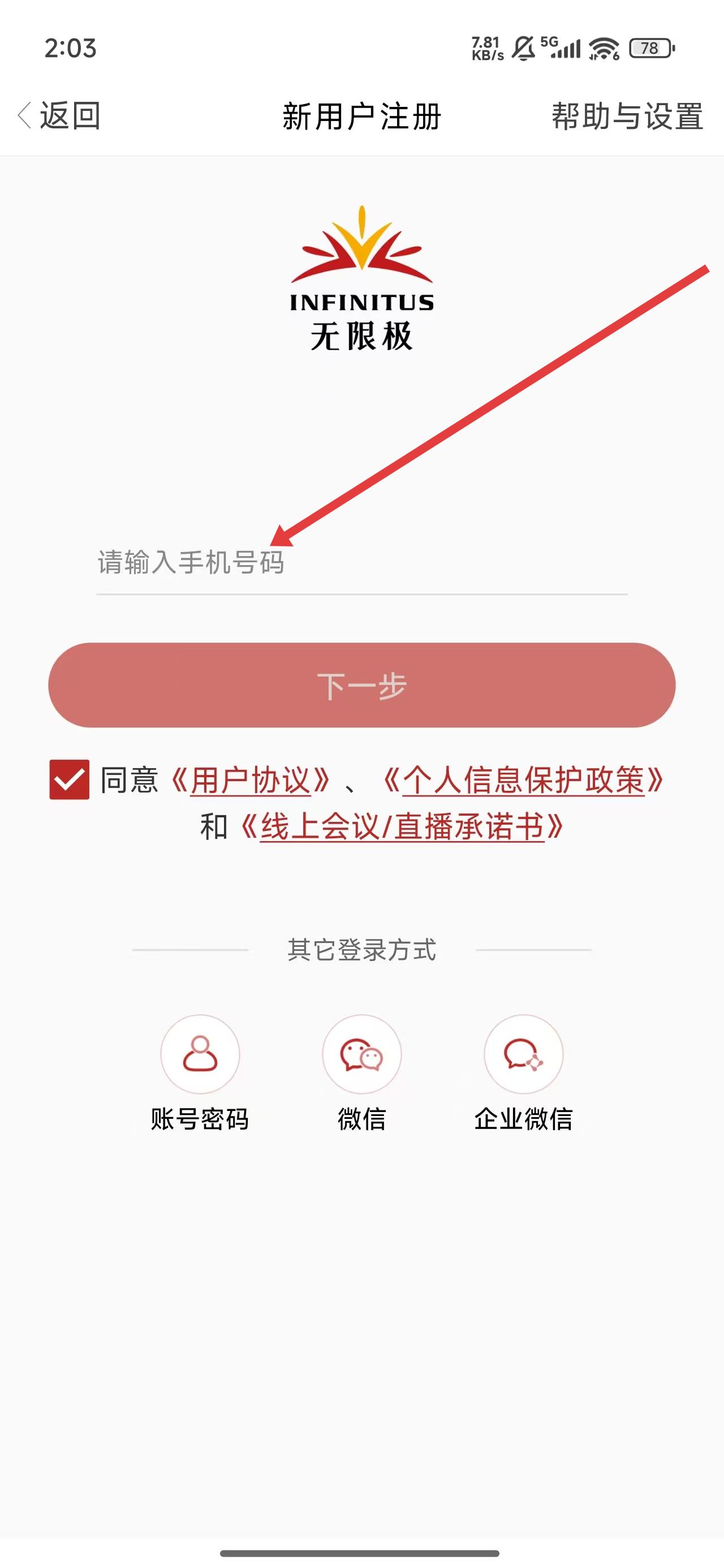 4、進(jìn)入到新用戶注冊頁面中,點(diǎn)擊輸入框填寫手機(jī)號碼以便獲取驗(yàn)證碼后,完成注冊操作。