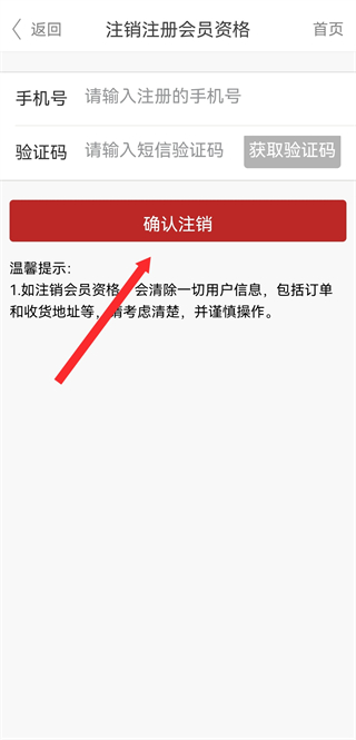 3、在注銷的頁面,輸入手機(jī)號、驗(yàn)證碼后點(diǎn)擊確認(rèn)注銷。