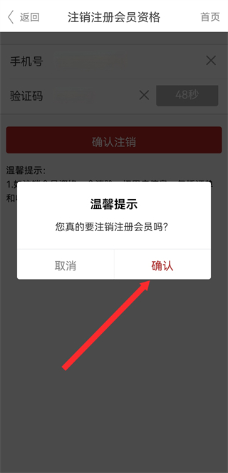 4、在溫馨的提示框中,點(diǎn)擊確認(rèn)按鈕,完成賬號注銷操作。