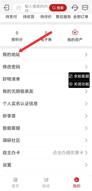 2、在個人的頁面中,點(diǎn)擊我的地址,進(jìn)入我的地址頁面。