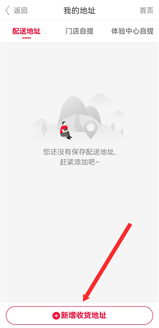 3、在我的地址頁面,點(diǎn)擊新增收貨地址,進(jìn)入新增收貨地址頁面。