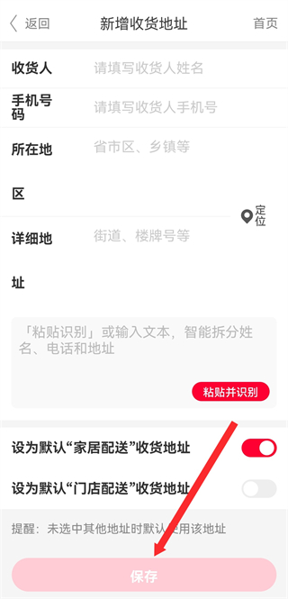 4、在頁面依次填寫收貨人姓名等信息,最后點(diǎn)擊保存完成新增操作。