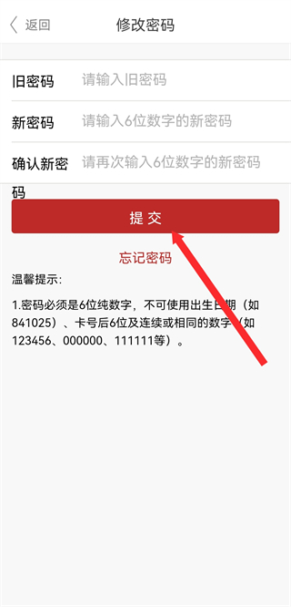 3、進(jìn)入修改密碼頁面,輸入密碼點(diǎn)擊提交,完成密碼修改操作。