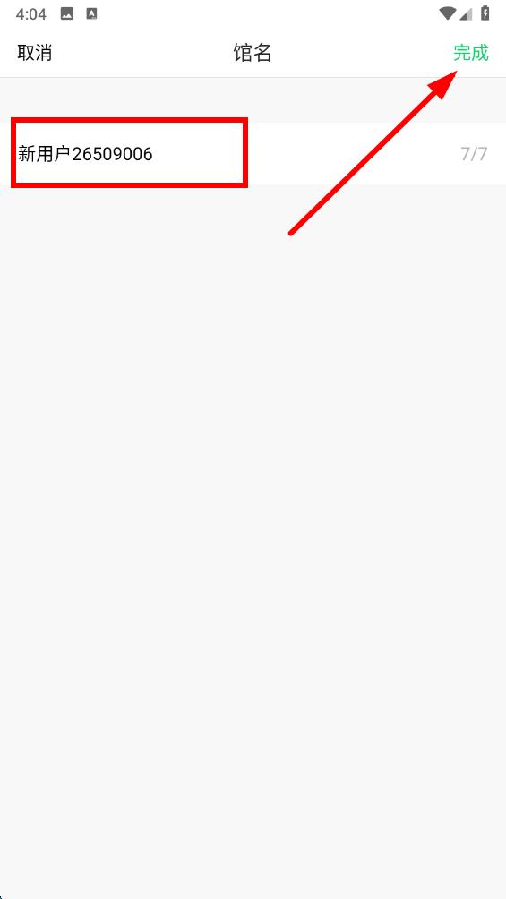 4、在館名修改頁面,輸入新的用戶名,然后點擊完成按鈕,即可完成用戶名的修改。