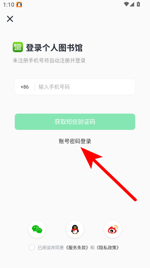 2、在登錄頁面,點擊賬號密碼登錄選項,進入密碼登錄界面。