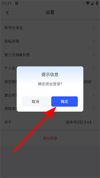 4、在系統(tǒng)彈出的功能欄中點(diǎn)擊確定,完成賬號(hào)退出的操作。