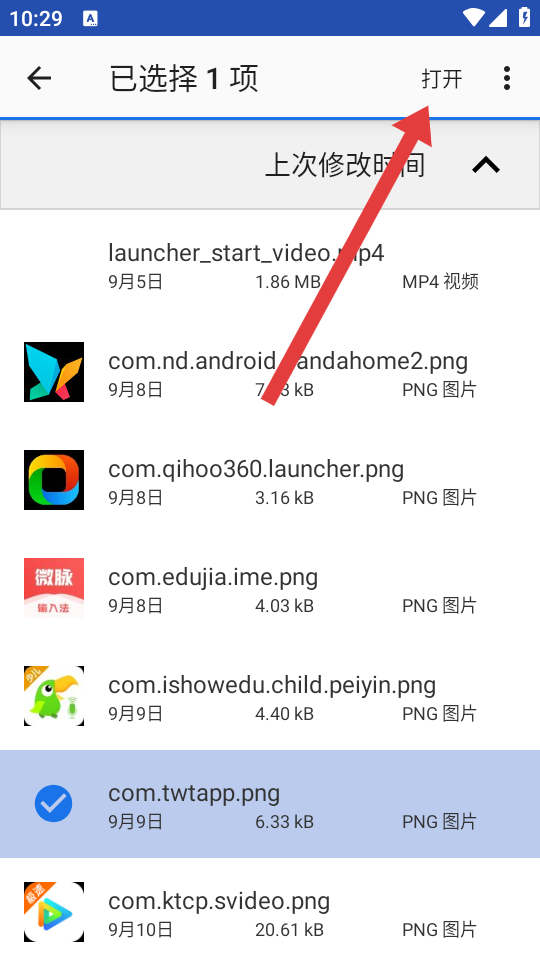3、在圖片選擇界面,勾選圖片后,點(diǎn)擊右上角打開,確認(rèn)圖片選擇。