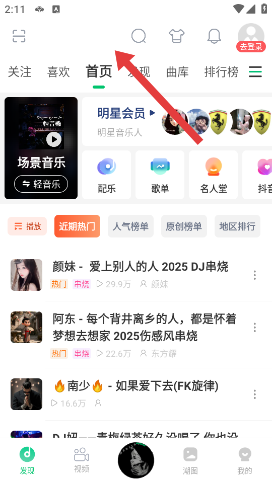 1、進(jìn)入y2002電音首頁(yè)后,點(diǎn)擊頂部搜索的圖標(biāo),進(jìn)入搜索界面。