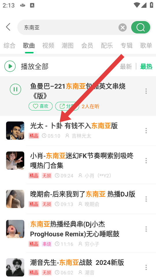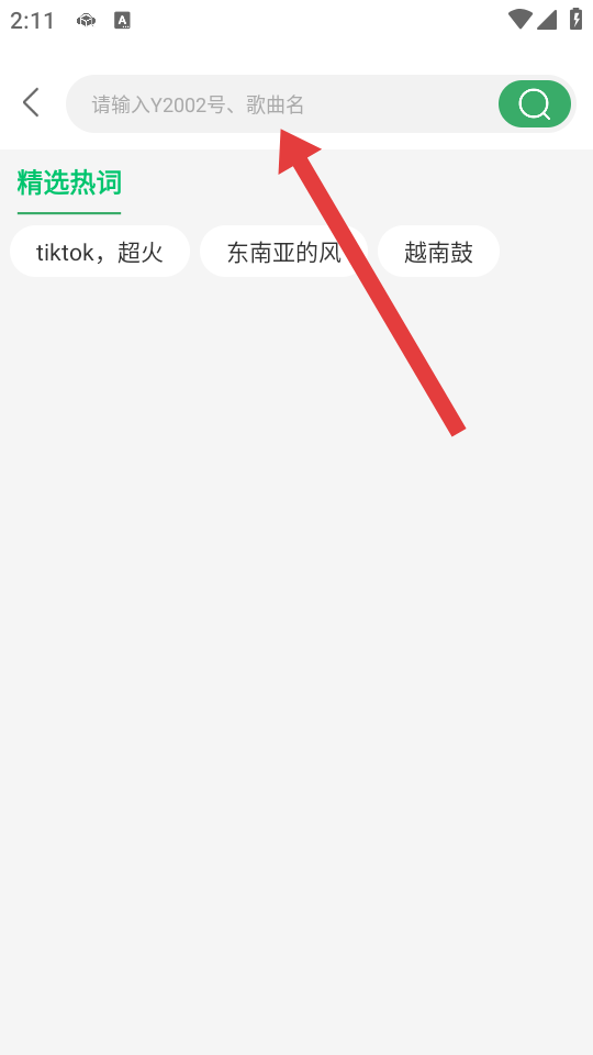2、在搜索框中輸入歌曲名或相關(guān)關(guān)鍵詞,如東南亞,準(zhǔn)備搜索。