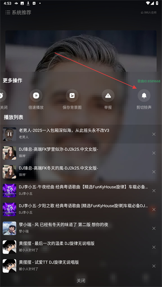 2、進(jìn)入音樂(lè)播放的界面內(nèi),點(diǎn)擊右側(cè)三個(gè)點(diǎn)的圖標(biāo)。