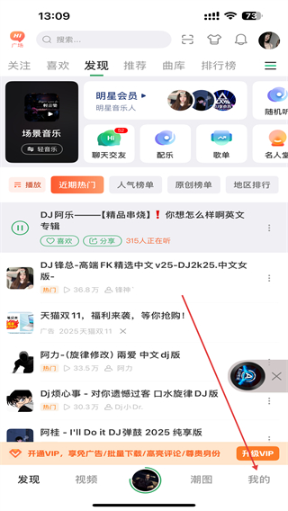 1、打開(kāi)y2002電音APP,進(jìn)入時(shí)點(diǎn)擊右下角我的按鈕。