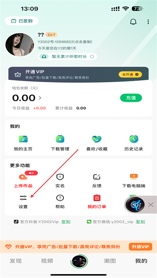 2、進(jìn)入我的頁(yè)面內(nèi),在更多功能下點(diǎn)擊設(shè)置的按鈕。