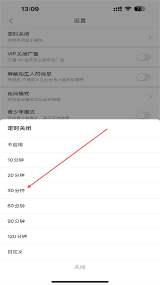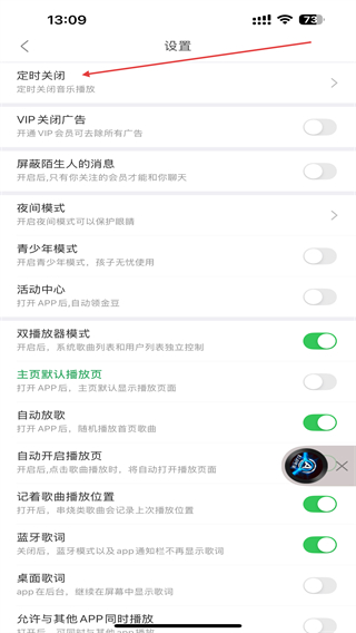 3、進(jìn)入設(shè)置的頁(yè)面內(nèi),點(diǎn)擊上方定時(shí)關(guān)閉的按鈕。