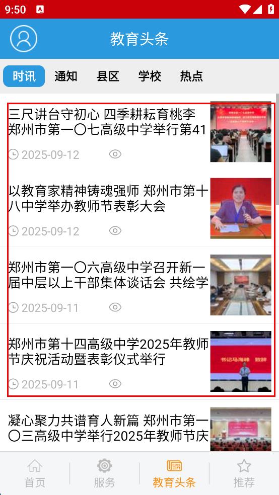 3、在教育頭條頁面,瀏覽展示的各類教育新聞,選擇自己感興趣的新聞。