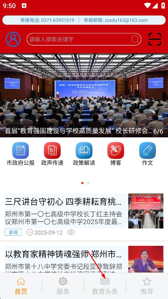2、在APP首頁,點擊底部的“教育頭條”選項,進入教育頭條頁面。