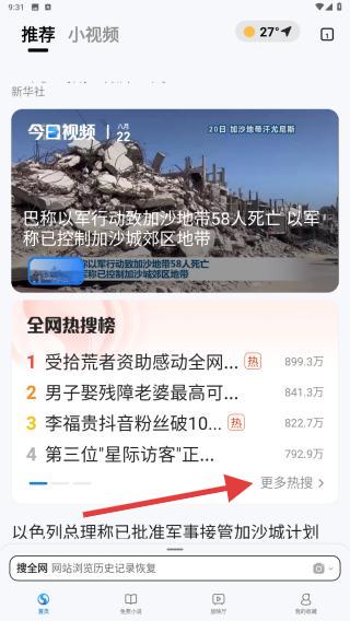 1、打開搜狗瀏覽器,進入主界面默認導航頁,在首頁資訊區(qū)尋找全網(wǎng)熱搜榜模塊,展示熱門詞條及熱度。