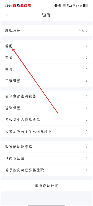 2、在設置頁面,在設置列表中,找到并點擊通用選項。