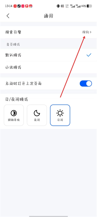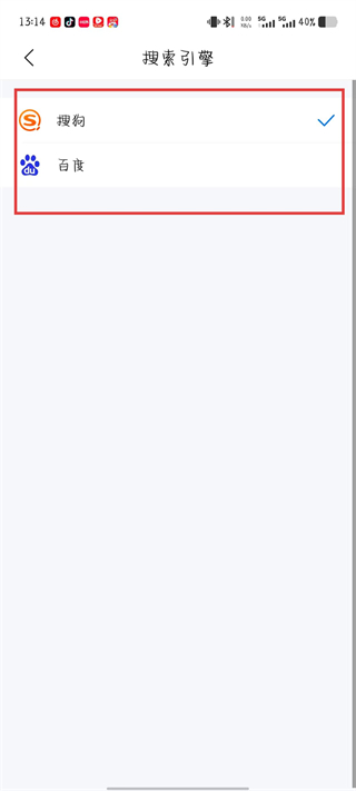 4、在搜索引擎頁面,可選擇搜狗或百度作為搜索引擎。