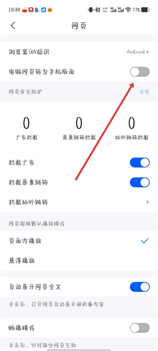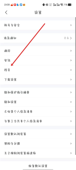 3、進入設置頁面之后,點擊網(wǎng)頁選項。
