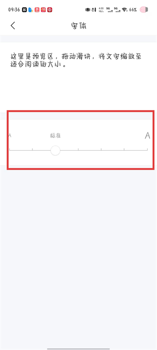 4、找到字體大小的滑塊控件,拖動滑塊調整到合適的文字大小。