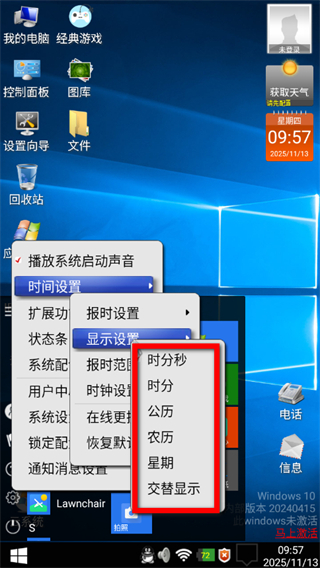 4、在時間顯示類型列表中,可選擇時分秒、時分、公歷、農(nóng)歷、星期或交替顯示等時間顯示方式,完成時間顯示設(shè)置。