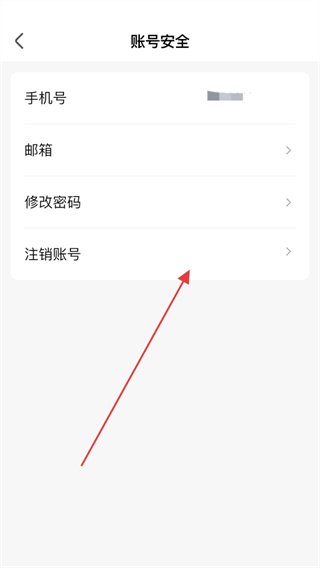 4、進(jìn)入賬號(hào)安全頁(yè)面后,點(diǎn)擊注銷賬號(hào)選項(xiàng)。