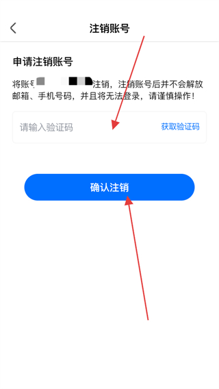 5、在注銷賬號(hào)頁(yè)面,輸入驗(yàn)證碼,點(diǎn)擊確認(rèn)注銷。