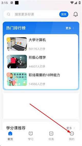 1、打開優(yōu)課UOOC APP,點(diǎn)擊底部導(dǎo)航欄中的我的選項(xiàng)。