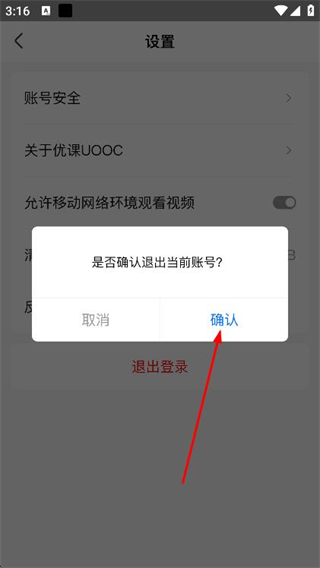 4、在彈出的提示框中,點(diǎn)擊確認(rèn)即可退出賬號(hào)登錄。