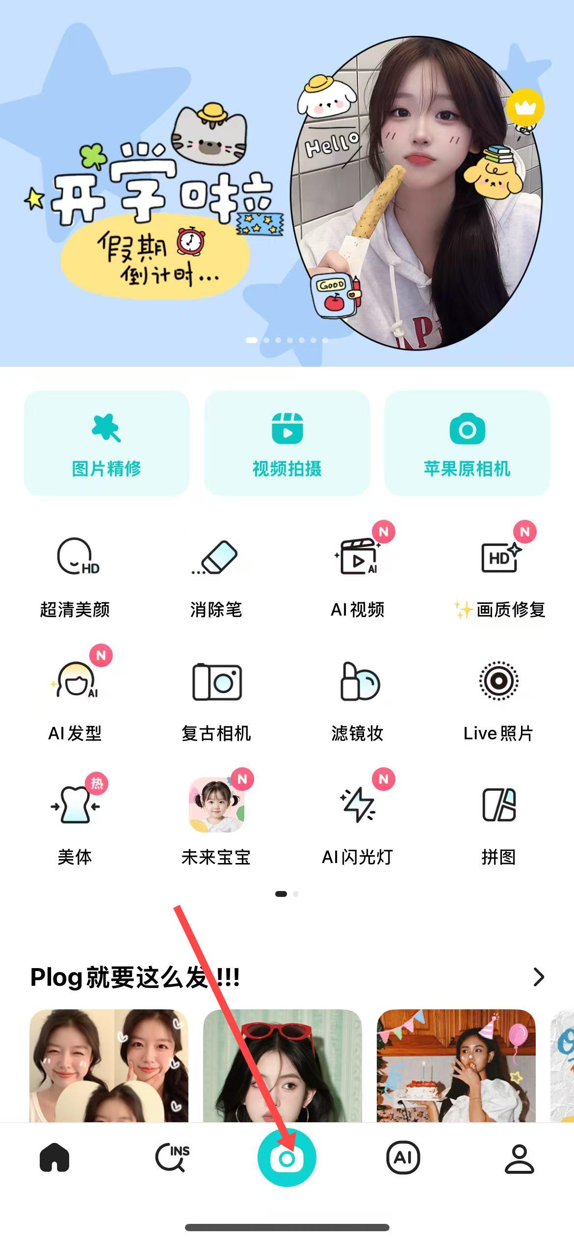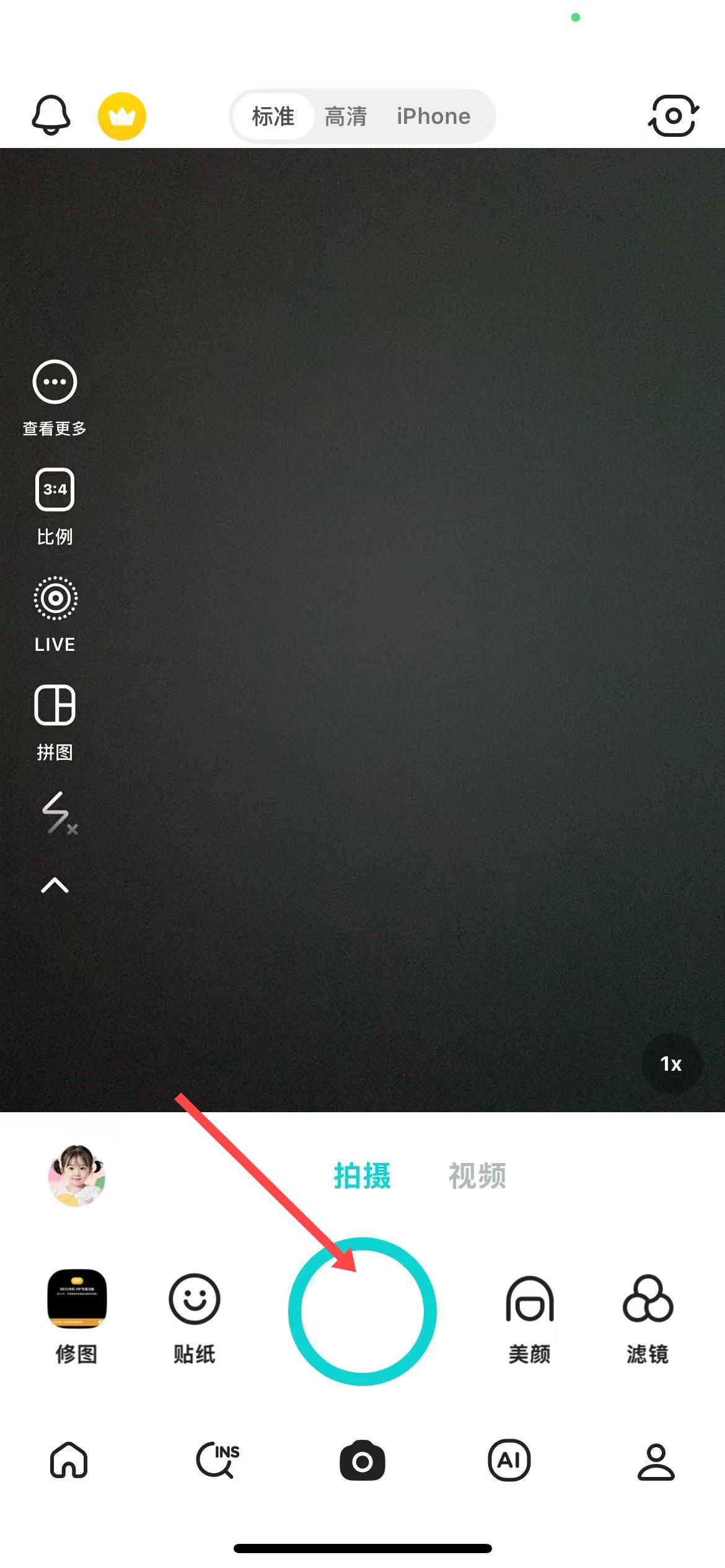 1、打開B612相機APP,點擊底部中間的相機按鈕進行拍攝。
