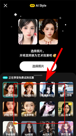 3、在照片選擇界面選擇喜歡的藝術效果如絨絨南瓜、惡魔高校生等。