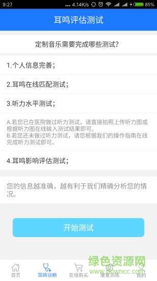 1、提供耳鳴在線匹配測試、聽力水平測試、耳鳴影響評估測試等,幫助用戶精準(zhǔn)了解自身耳鳴情況,為后續(xù)管理提供依據(jù)。