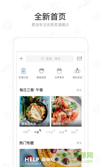 美食杰擁有國內(nèi)最全面的菜譜數(shù)據(jù)內(nèi)容,提供強大的搜索和詳細的菜譜分類,每日的精品菜譜推薦,讓做飯不再成為每日我們生活的難題。