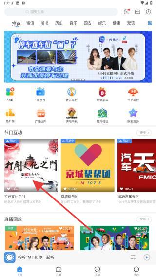1、打開聽聽fm應(yīng)用軟件,在首頁的節(jié)目互動(dòng)下,選擇并點(diǎn)擊喜歡的節(jié)目。