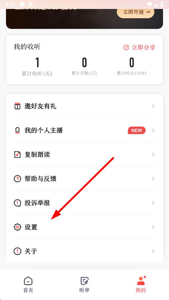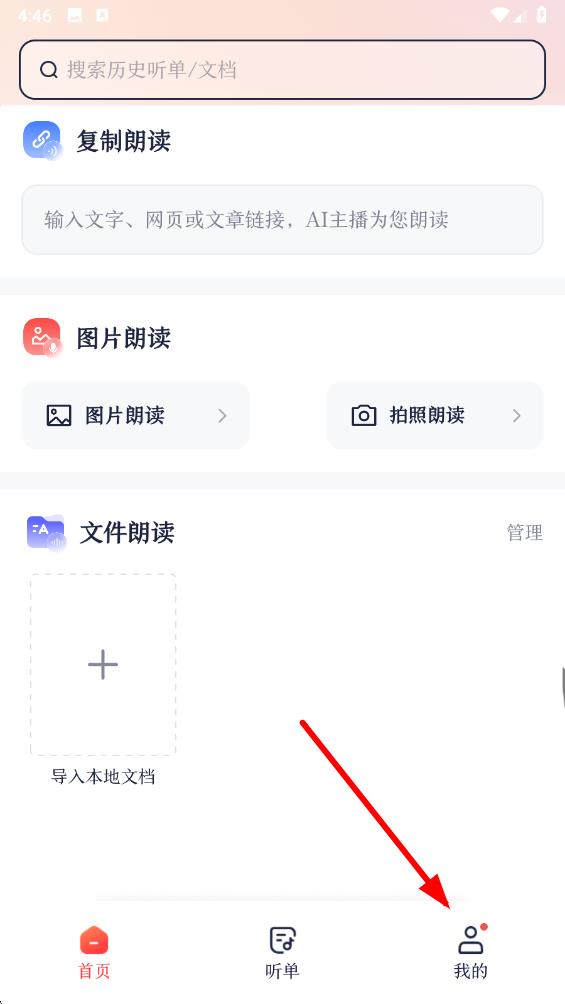 1、打開訊飛有聲app,點擊底部導航欄最右側(cè)我的選項,進入個人相關設置界面。