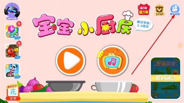 1、打開寶寶小廚房,點擊右上角的賬號中心。