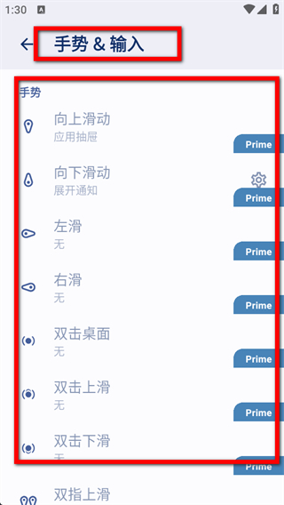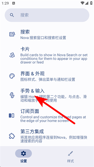2、在Nova設(shè)置界面,點(diǎn)擊手勢(shì)&輸入選項(xiàng),進(jìn)入對(duì)應(yīng)設(shè)置頁(yè)面。
