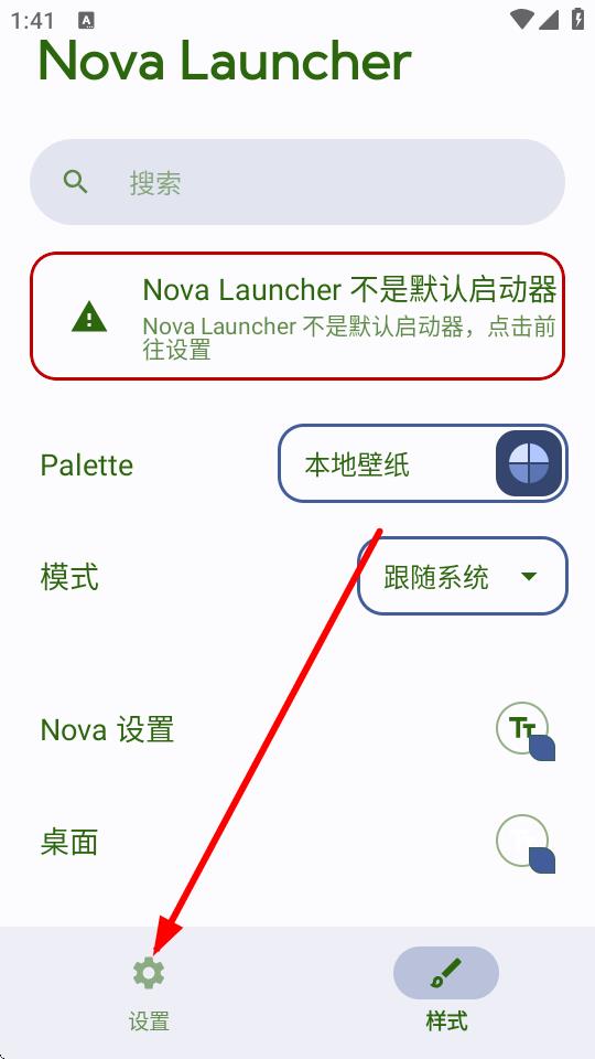 1、打開Nova,點擊底部的設(shè)置按鈕進入設(shè)置界面。