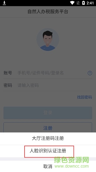 第三步:點(diǎn)擊【注冊(cè)】,選擇【人臉識(shí)別認(rèn)證注冊(cè)】方式
