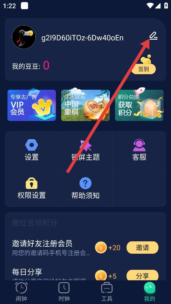 2、在我的頁面中,點擊頭像旁邊的編輯圖標(biāo),進入個人資料頁面。