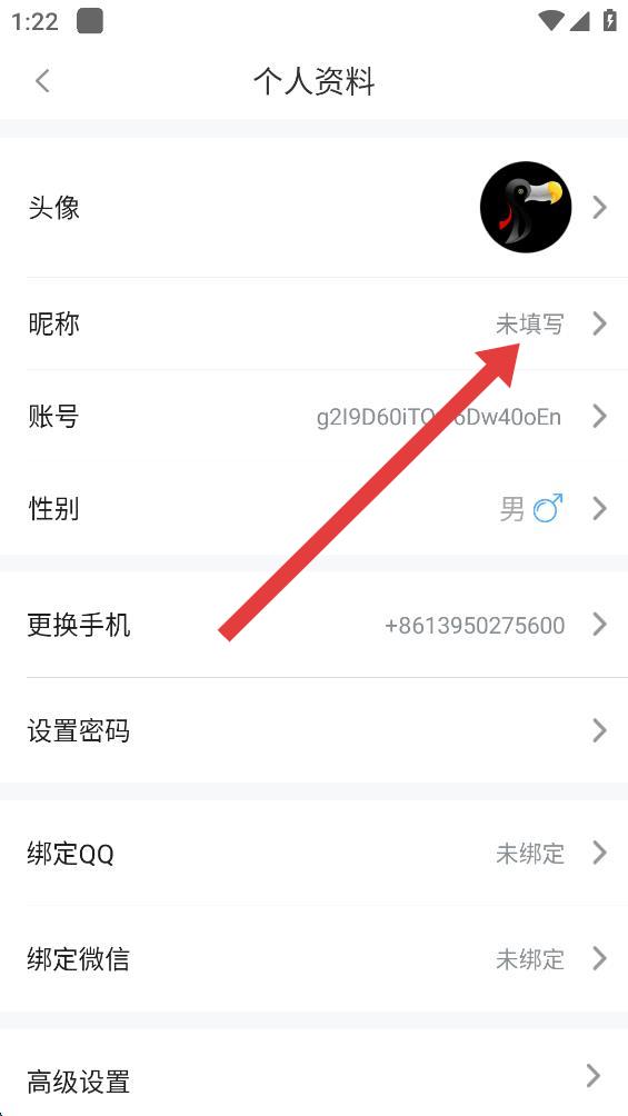 3、在個人資料頁面,點擊昵稱選項,進入設(shè)置昵稱的界面。